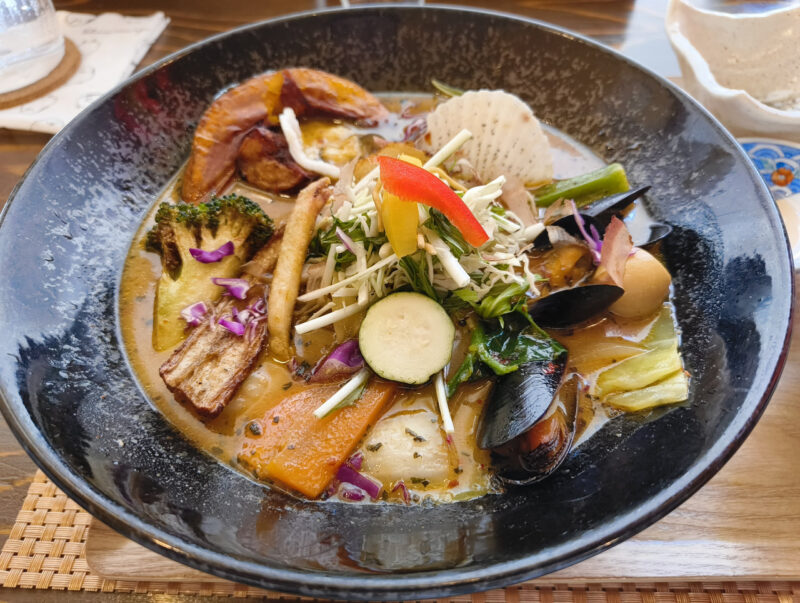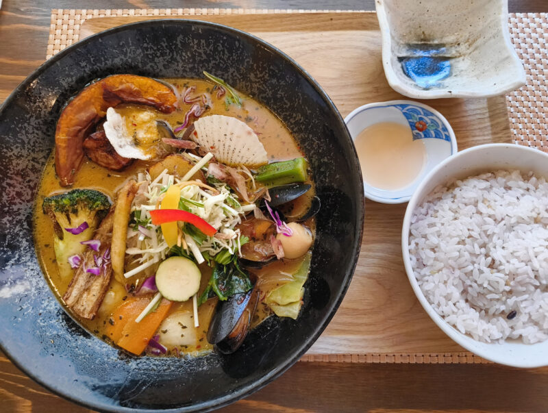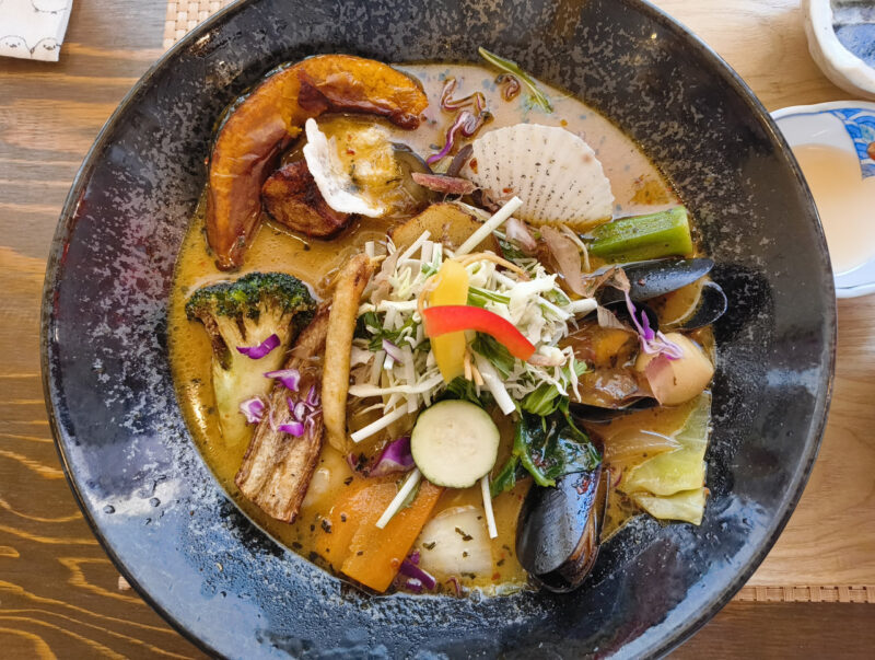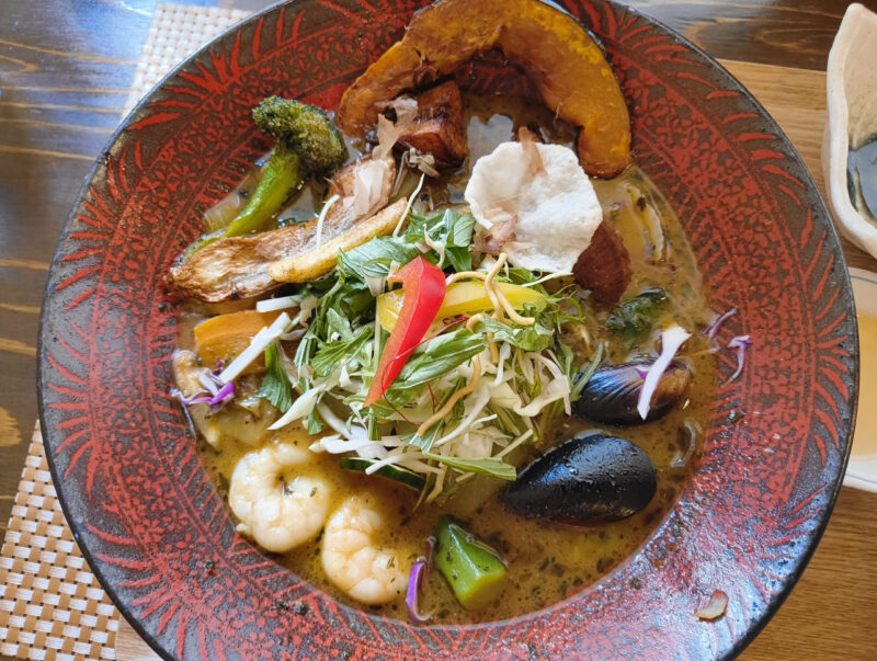 口に入れると、先ず、スパイスの香りが広がり、その後に出汁の旨味を感じることができます。