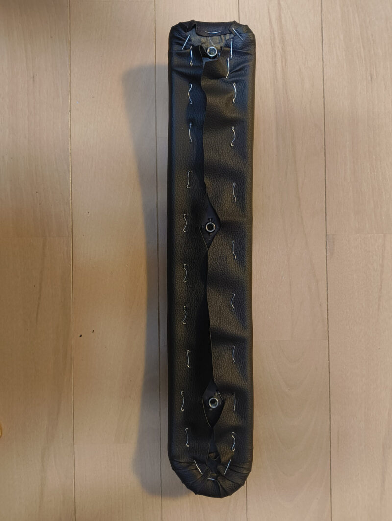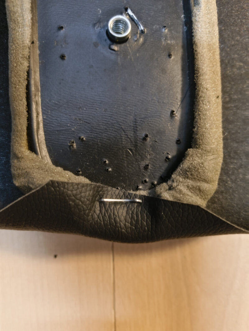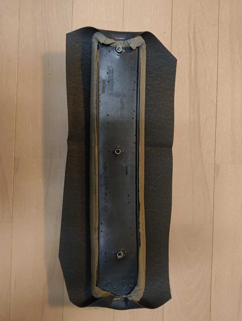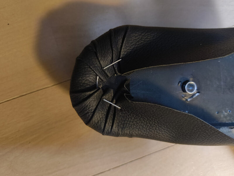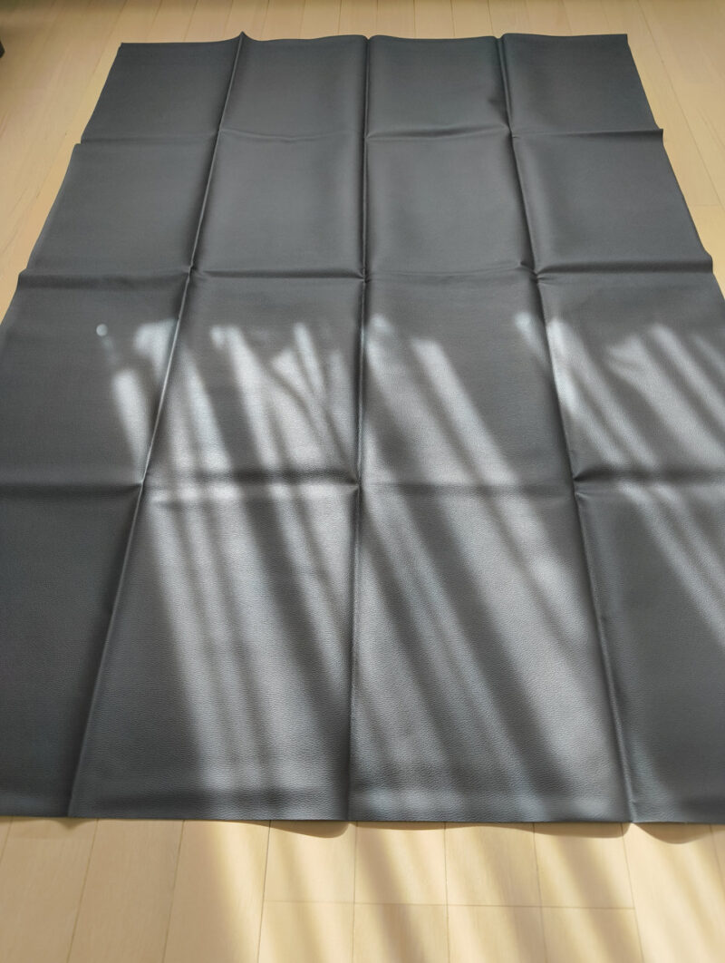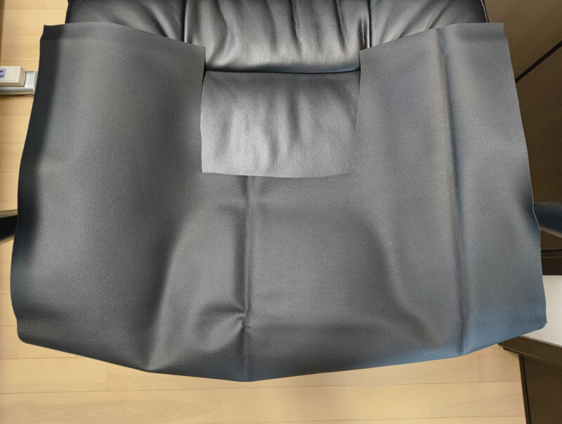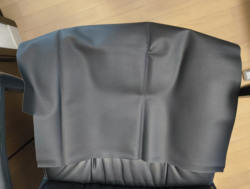 大胆な裁断: 新しい合皮シートを、あえて「ざっくり大きめ」にカット。これが後の仕上がりを左右する、匠の計算です。