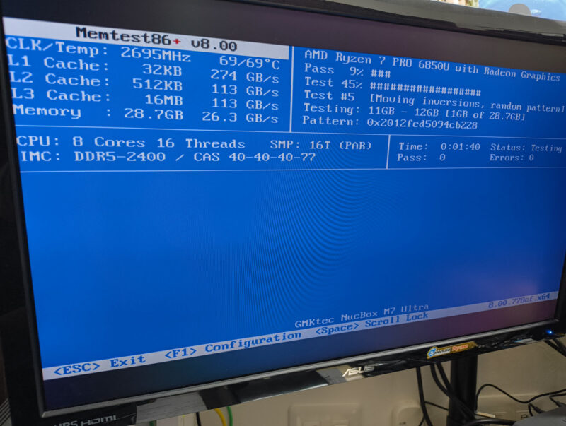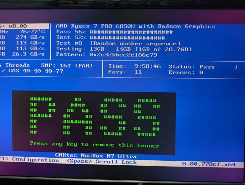 メモリテストは、寝る前にMEMTEST86+を実行して朝起きたら11回も回ってました。