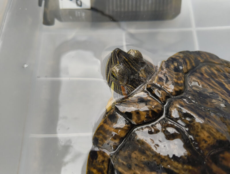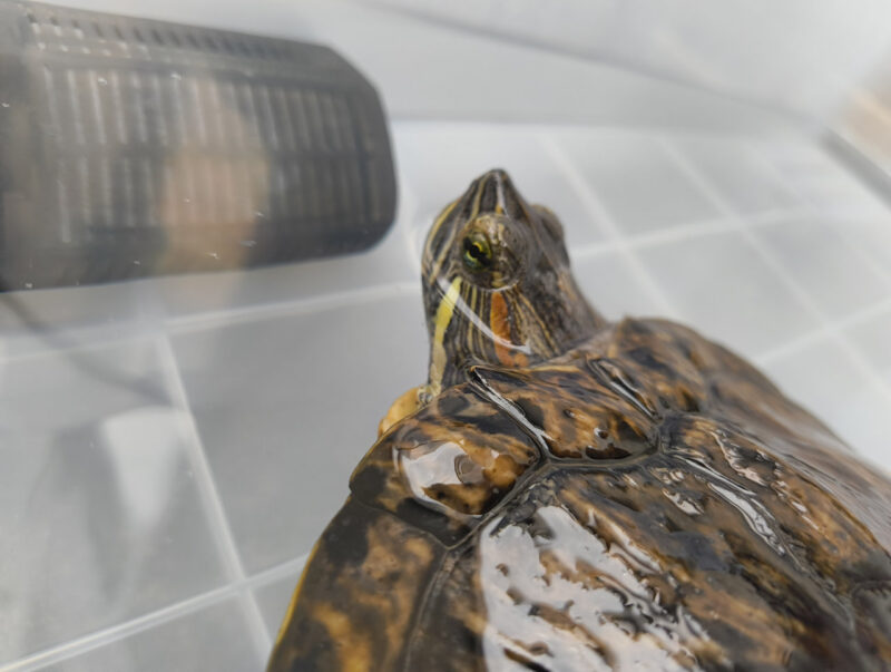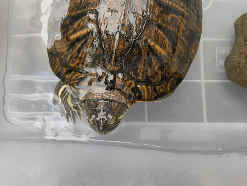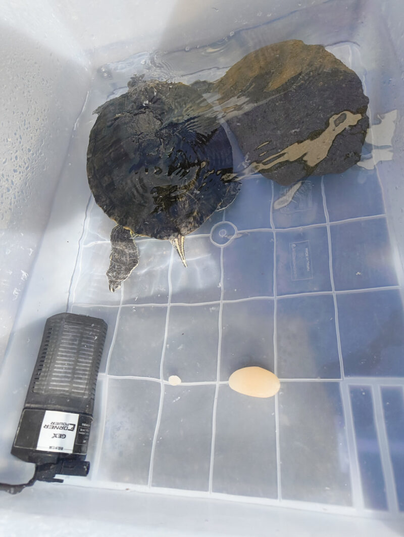 先月(9月)の暖かい日、亀の水替えをしようと見てみると、水が白っぽく濁っていました。