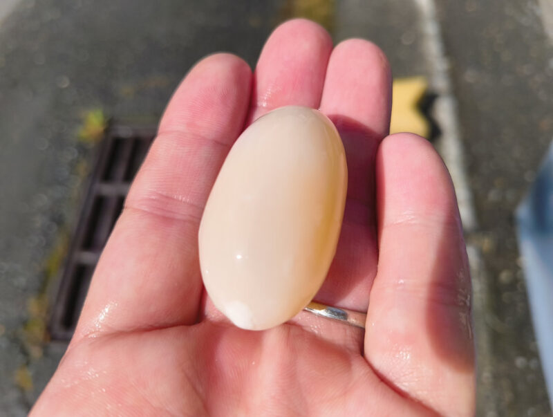 触った感じは、殻はペコペコと押すと凹んだりするくらいの硬さで、表面はちょっと滑りがあります。